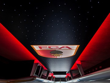 The special lighting design with starry sky optics gives the interior of your MAN bus a unique touch. Up to 320 stars per element can be switched on and off via remote control from the driver's seat, with their colour and light intensity being adjustable to individual tastes by means of a selection of various programming options.